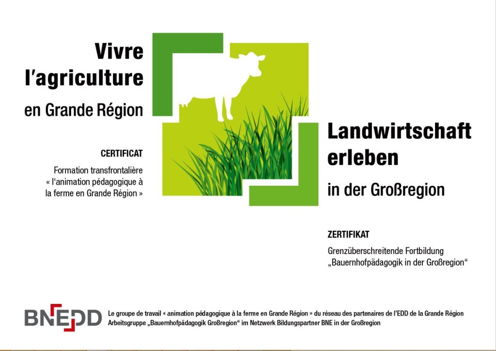 Seit 2014 haben über 150 pädagogische und landwirtschaftliche Fachkräfte an einzelnen grenzüberschreitenden Weiterbildungen zur Bauernhofpädagogik in der Großregion teilgenommen und sich auf diesem Gebiet weiter gebildet.